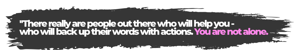 I only wish that one day I will get the chance to help another woman in the sort of situation that I was in, just as I was helped, and I would say to that woman: there really are people out there who will help you – who will back up their words with actions. You are not alone.