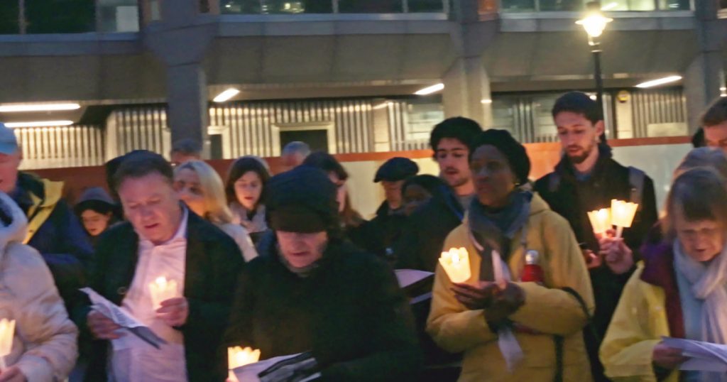 Mercifully the weather eased off as the prayer vigil began and those present each lit a candle creating a sea of lights in the darkening evening. Madeline Page from the Alliance of Prolife Students introduced the first religious leader who was to speak; Lynda Rose, an Anglican priest.