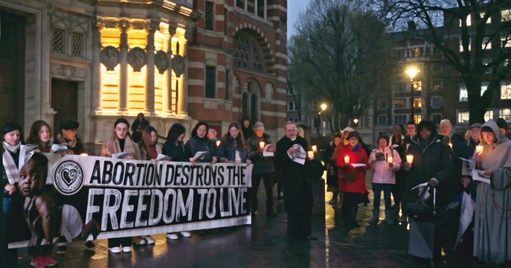 Despite the 27th April being a weekday evening, and a very wet and inhospitable one at that, hundreds gathered at Westminster Cathedral Piazza to remember those who had their lives ended or wounded by the implementation of the Abortion Act in the UK 55 years ago.