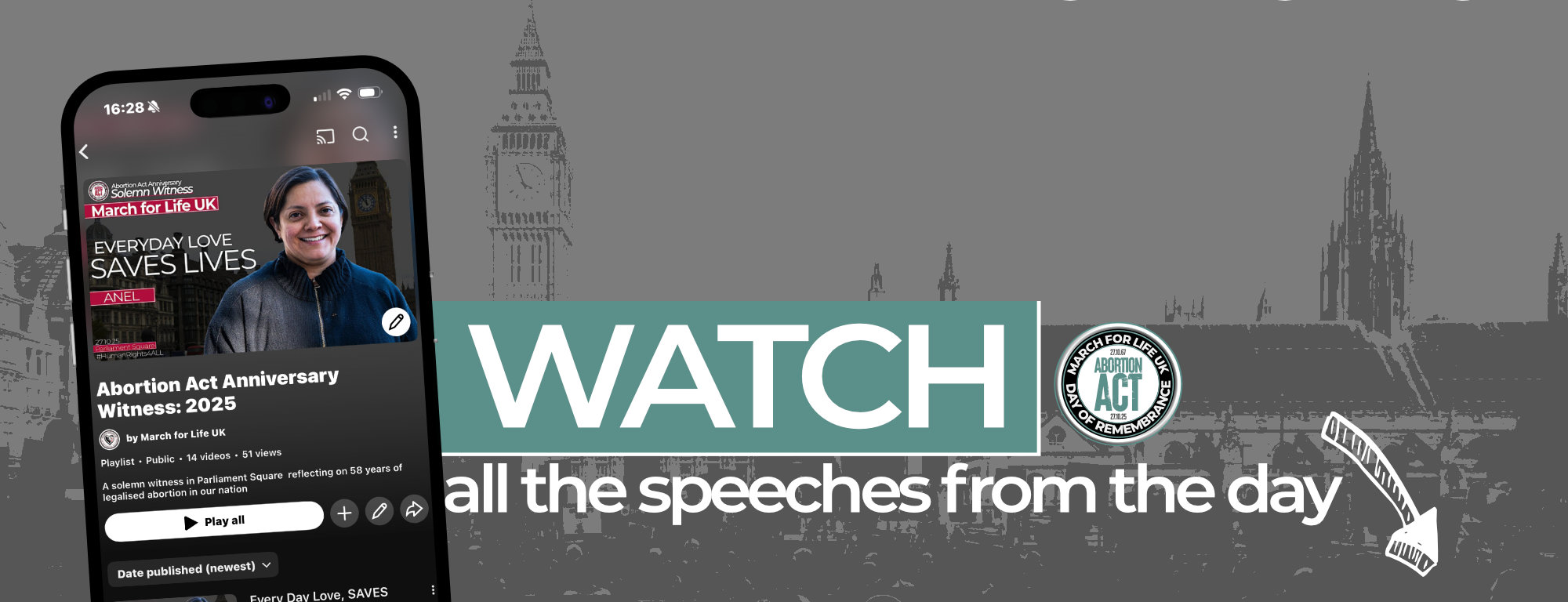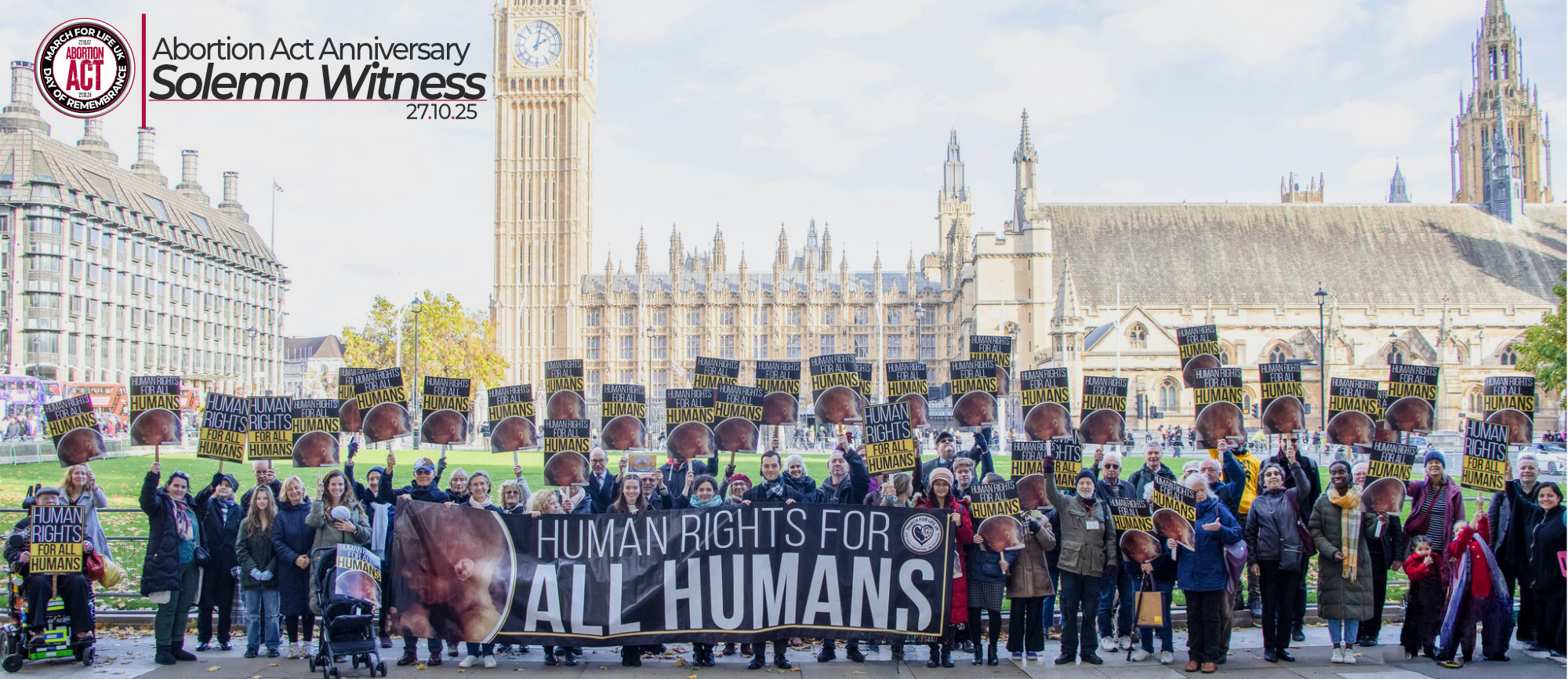 To commemorate this anniversary, we are holding a Witness Event from 12pm to 2pm in Parliament Square, London, where we will remember all the lives lost to abortion as well as those who have been impacted in any way. We warmly invite you to join us in standing publicly for Human Rights for All Humans – our theme for this year.