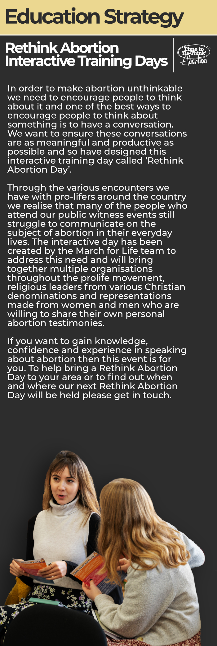 March for Life UK is a Christian pro-life organisation which incorporates three main annual events as well as a continuous mission comprising of three key aims.